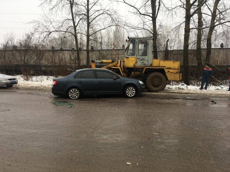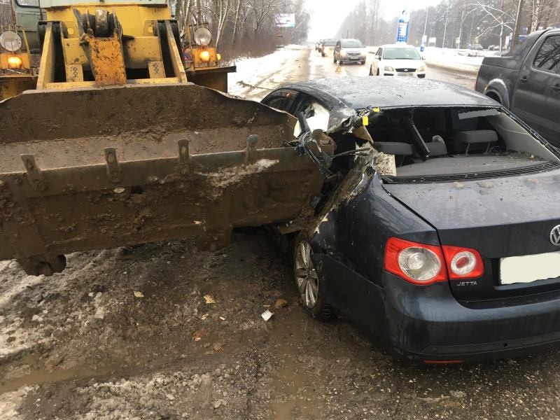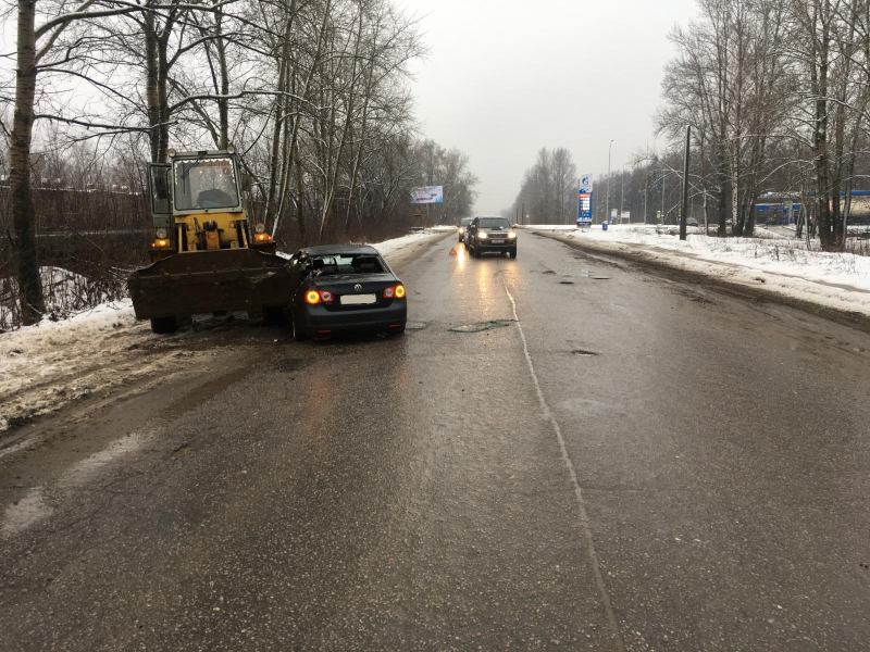 напротив дома 56 города Рязани 22-летний житель областного центра, управляя автомобилем «Фольксваген Джетта», двигаясь со стороны улицы Щорса в направлении улицы Южный промузел, не справился с рулевым управлением и совершил наезд на стоящий на противоположной обочине фронтальный погрузчик под управлением 41-летнего жителя Рязанской области.